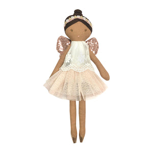 Chloe loves to dance, she twirls about gracefully with her pink tutu skirt, sequined fairy wings and floral crown complementing her dark brown ballerina bun. Handmade by Albetta this special toy is sure to become a treasured heirloom for many years. The perfect gift for a budding ballerina.