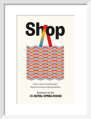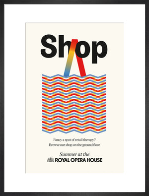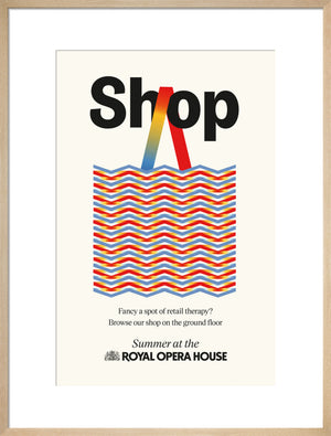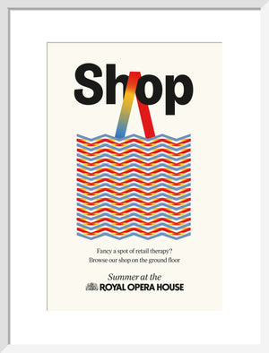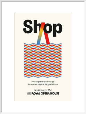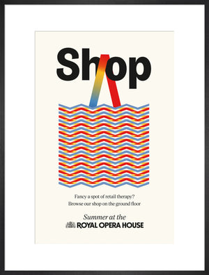 The Shop Print is part of a series designed exclusively for the Summer Season at the Royal Ballet and Opera, 2024.