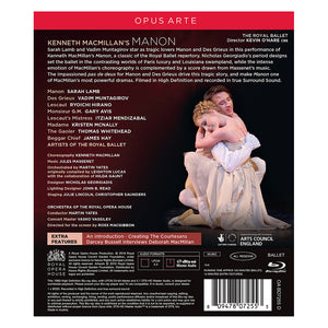 Sarah Lamb and Vadim Muntagirov star as tragic lovers Manon and Des Grieux in this performance of Kenneth MacMillan's Manon, a classic of the Royal Ballet repertory. Nicholas Georgiadis's period designs set the ballet in the contrasting worlds of Paris luxury and Louisiana swampland, while the intense emotion of MacMillan's choreography is complemented by a score drawn from Massenet's music.
