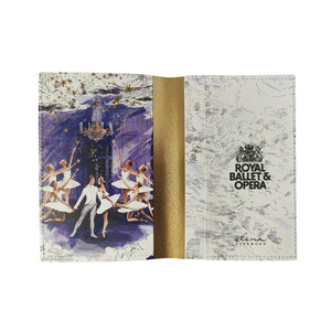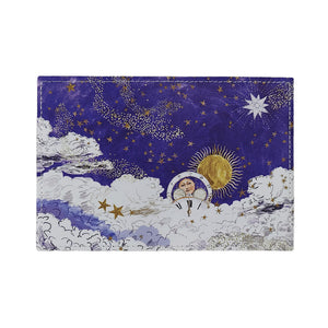 This Cinderella Passport Holder showcases a beautiful illustration inspired by the clock in the ballroom scene of Cinderella. The artist, Elena Deshmukh, was captivated by the scene and used a celestial sky theme in her design.
