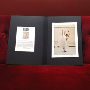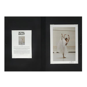 This signed photograph of the Principal dancers will come presented in a bespoke digitally printed black archival mountboard portfolio, the limited run of 50 prints per artist are printed on Titanium Lustre 280gsm paper which is an award-winning inkjet paper with a unique metallic base and subtle lustre surface. This paper adds a dramatic appearance whilst maintaining a high level of detail. The prints are complete with a certificate of authenticity which features the biography of the corresponding Principal dancer.