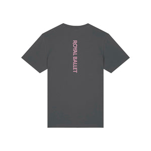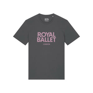 Show your love for The Royal Ballet in style with this comfy, medium-fit unisex grey cotton t-shirt. This lightweight garment, made from soft organic jersey fabric, features eye-catching pink glitter text that contrasts beautifully with the grey background.