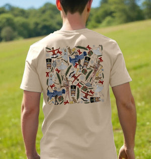 Celebrate the magic of the Nutcracker with this fun custom printed t-shirt showcasing Kate Hester's delightful illustrations. Clara and the Nutcracker jump across the front, while the back showcases a captivating Nutcracker design. A delightful choice for ballet enthusiasts and festive fashion lovers!