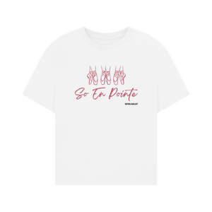 Discover the exclusive Royal Ballet 'So En Pointe' oversized T-shirt, made from luxuriously soft certified organic cotton and created in a renewable energy-powered facility. Order your custom tee today! Since it’s oversized, we recommend choosing the smaller size if you’re between two sizes for the best fit.