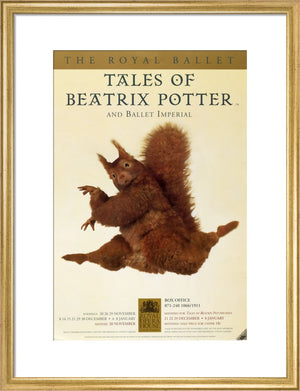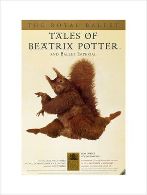 The Tales of Beatrix Potter Print is in our Custom Print collection, it's a reproduction of an archive ballet poster illustrated with a colour photograph of Matthew Hart as Squirrel Nutkin in the production from 1992, photograph by Anthony Armstrong-Jones.