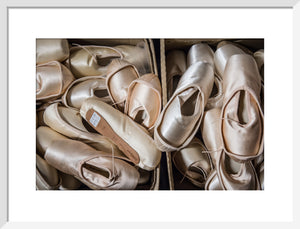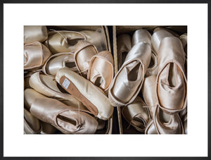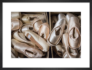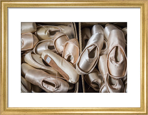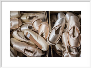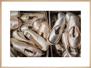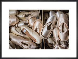 Go behind the scenes at the Royal Ballet and Opera with this exclusive Dyed Pointe Shoe Print. This print showcases an image of colourful pointe shoes on display in our Dye Room taken by photographer Sim Canetty-Clarke.