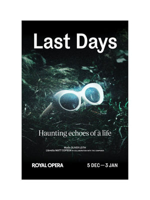 The official 2025 poster for The Royal Opera’s production of Last Days, running from 5 December to 3 January 2026