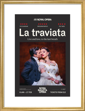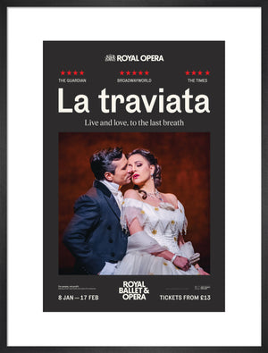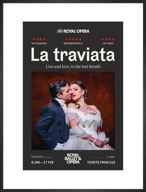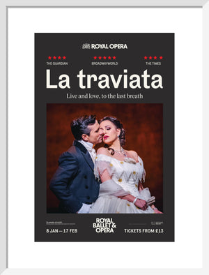 A custom made print of the official 2025 poster for The Royal Opera’s production of La Traviata, running from 8 January- 17 February 2026.
