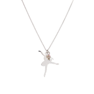 This silver-plated Ballerina Necklace is exclusive to the Royal Ballet and Opera. The pendant shows a graceful ballerina, delicately balanced in a perfect arabesque, as seen in performances on our stage. Included with the pendant are a delicate pearl and a charming pink bead. A beautiful reminder of the magic of ballet and makes for a lovely gift for ballet lovers both children and adults.