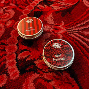 The RBO Heritage Carpet Mint Imperials are presented in a convenient travel tin holding 40g of mints. The container is charming and designed for reuse.