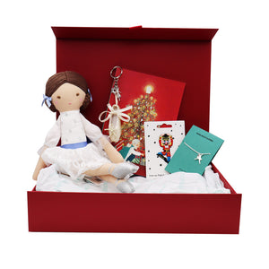 Introduce young dancers to the magic of The Nutcracker with this enchanting collection. Inside you'll discover treasures curated especially for ballet enthusiasts: a beautifully handcrafted Clara doll by Albetta, an exclusive ballet shoe keyring, a delicate ethically made ballerina bracelet, a Clara and Drosselmeyer notebook for jotting down dreams, and a Nutcracker iron-on patchto personalise their favourite pieces. Each item celebrates the wonder of this beloved classic, making it an ideal gift for aspiring performers.