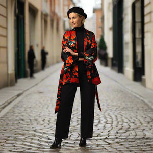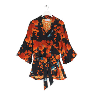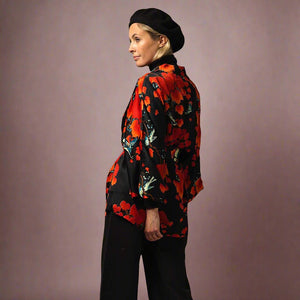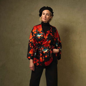 One Hundred Stars best-selling Acer print is back again this season on this gorgeous Acer Black Wrap Jacket. The print features the beautiful ornamental foliage of the Japanese maple tree.