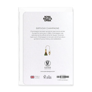 Text on the reverse: Champagne has been served at royal courts across Europe for centuries. In 1884, Champagne was selected as the official drink for Queen Victoria’s royal court. Champagne is not just a drink but also a symbol of luxury, history, and celebration.