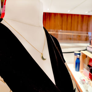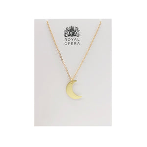 This elegant Half Moon necklace draws inspiration from the key motifs found in the opera The Magic Flute. It is hand crafted from brass and features a gold plated chain.