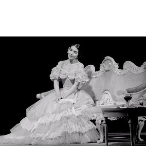 An authentic replica of the original photograph of Maria Callas as Violetta in Act 1 of La Traviata, 1958. Taken from the Royal Opera House archives, you can now have your very own copy to display in your home.