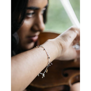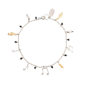 This beautiful charm bracelet is handmade in the UK in sterling silver. It features a selection of musical notes, in silver and gold plate alternating with onyx beads. The perfect accessory for your everyday looks, it's a classic piece you'll enjoy wearing for many years to come. See all of Amanda's music themed jewellery