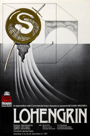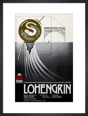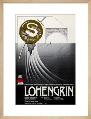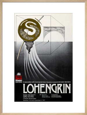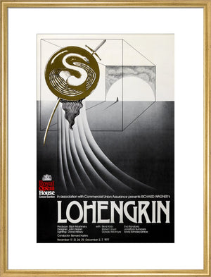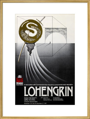 This is a faithful reproduction of an archive poster for Wagner's opera Lohengrin. It showcases The Royal Opera's 1977 performance of Lohengrin at the Royal Opera House, providing a unique glimpse into this historic event.