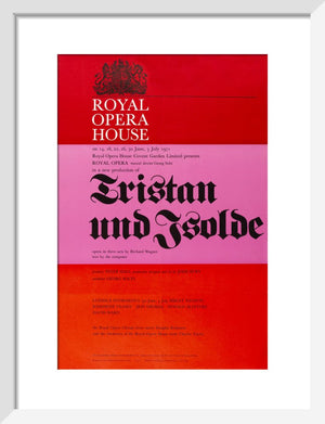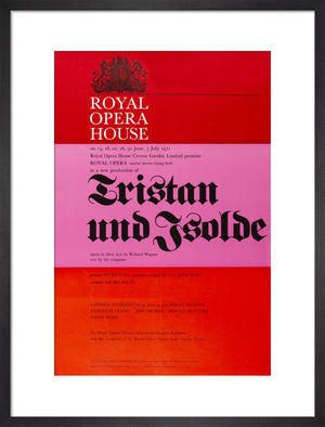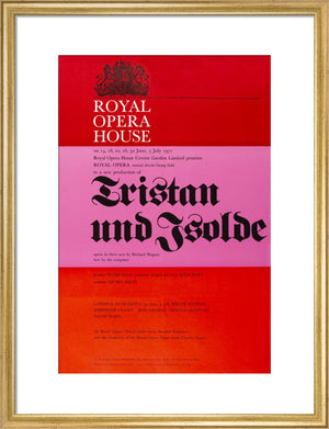 Celebrate opera with this custom made print for Wagner's epic Tristan und Isolde. It is a faithful reproduction of the archive poster for The Royal Opera's performance from 1971, providing a unique glimpse into this historic event.