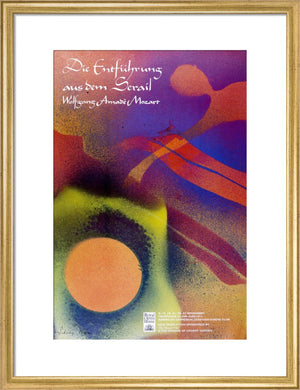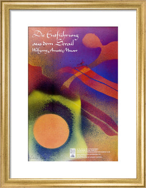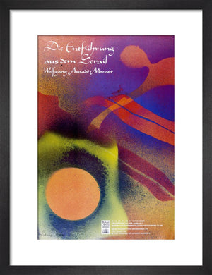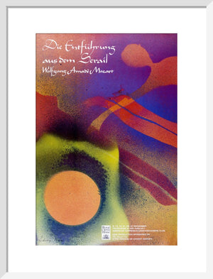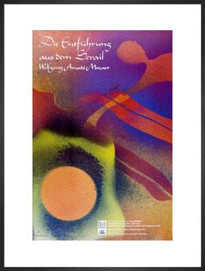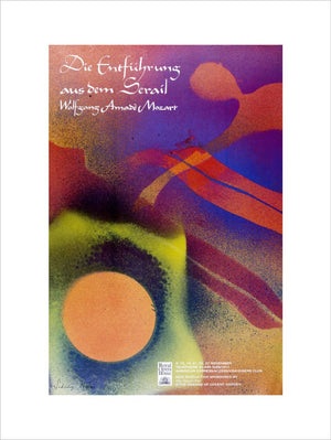 This Die Entführung aus dem Serail Print is a reproduction of the archival poster for the 1987 Mozart performance. It features an abstract image by Sidney Nolan.