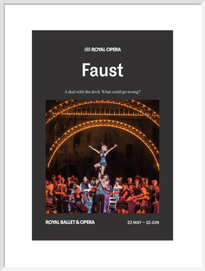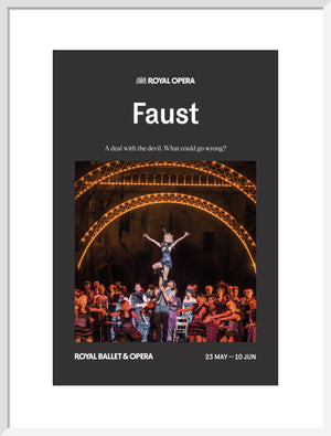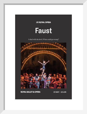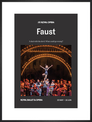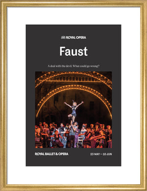 This a reproduction of the Royal Opera poster for Gounod's Faust, performed at the RBO May 2025. Order your custom print now, expertly handcrafted by King & McGaw in Newhaven. Choose from various sizes and frames, all meticulously handcrafted.