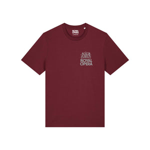 Show your love for The Royal Opera with this classic cotton medium fit t-shirt. Crafted from 100% pure organic jersey fabric, this lightweight garment is both comfortable and stylish. The silver printed logo against the burgundy gives it a striking, contemporary look.