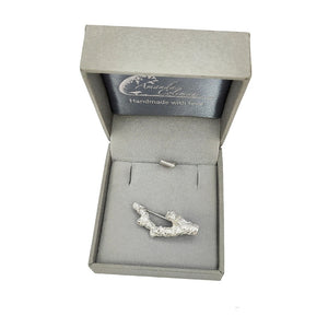 Inspired by the tree from the set design of our Das Rheingold production, artist Amanda Coleman began by researching the opera and photos of the set. She chose a twig for the design which looked like a miniature tree with a gnarly, textured look and many offshoots. The 100-year-old apple tree in her garden provided the perfect bark with character and texture. Sections of a branch where sent to a company to make a mould so she could cast them into precious metal. Once she had the branches in silver she selected the most pleasing parts, they were resized and soldered a brooch fitting, thus completing the magical alchemy of tree to jewellery.
