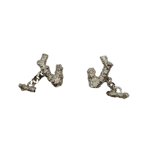Taking inspiration from the tree on stage in our production of Das Rheingold, artist Amanda Coleman began by researching the opera and photos of the set. She chose a twig for the design which looked like a miniature tree with a gnarly, textured look and many offshoots. The 100-year-old apple tree in her garden provided the perfect bark with character and texture. Sections of a branch where sent to a company to make a mould so she could cast them into precious metal. Once she had the branches in silver she selected the most pleasing parts, they were resized and soldered cufflink fittings, thus completing the magical alchemy of tree to jewellery.