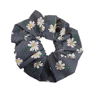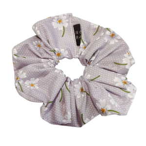 Handcrafted daisy scrunchies inspired by the ballet Giselle. Available in navy, powder blue, and lilac, each piece is made from cotton printed with delicate daisies and playful polka dots, and finished with a woven RBO label.