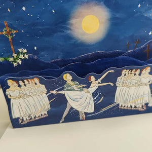 Bring a touch of ballet magic to your greetings with this charming pop-up card featuring the scenes from Giselle. Illustrated by the talented Kaori Watanabe of foxco, each card unfolds to reveal a delightful three-dimensional surprise. Ideal for RBO enthusiasts and ballet lovers alike, it transforms an ordinary message into an unforgettable keepsake.