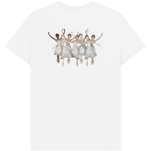 Celebrate the magic of the Nutcracker with this fun custom printed t-shirt showcasing Kate Hester's charming illustrations. The Sugar Plum Fairy pirouettes proudly across the front, while the snowflakes dance across the back. A delightful choice for ballet enthusiasts and festive fashion lovers!