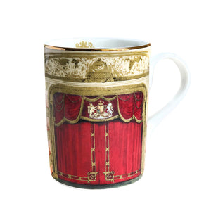The Auditorium Mug is an elegant fine bone china mug featuring Elena Deshmukh’s unique illustration of the Royal Opera House Main Stage, with beloved opera and ballet characters peeking in from behind the scenes.