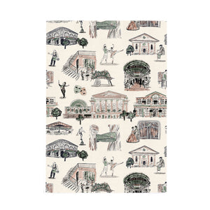 The Covent Garden Tea Towel features exclusive designs by Portia Graves. Featuring Covent Garden's iconic architecture and lively ambience, this tea towel highlights the Royal Ballet and Opera, showcasing the main stage and talented performers, along with the Apple Market, Punch and Judy Pub, Jubilee Market and the iconic bridge of aspirations. The vibrant piazza is also captured, complete with street performers adding to the bustling atmosphere.