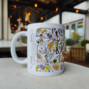 This china mug features Kate Hester’s lively illustration of La Fille mal gardée, bursting with dancers, sunflowers, chickens, clogs, watering cans, hay, and more. It’s a fun and colourful way to brighten up your tea or coffee break.