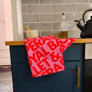 Our bright and bold Signature Tea Towel is the perfect way to add a touch of colour and class to your kitchen. Featuring a repeating tonal pattern of the name of our historic institution in dark text against a light background, choose from four colours, Blue, Pink, Purple, and Green, to show off your signature style.