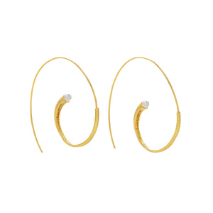 The minimalist Avalon Pearl Hoop Earrings make a real statement, handmade from 21ct gold-plated recycled brass. The chic pull-through hoops are finished off with a pearl, perfect for layering with simple gold bangles for your night at the opera.