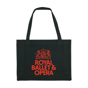 The exclusive Royal Ballet and Opera Black Shopper is made from sturdy cotton canvas and features a vibrant red Royal Ballet and Opera logo on the front. With sturdy, reinforced straps and a clever side soufflet seam, this bag is designed to maintain its 3D shape. Eco-friendly bag made with 80% recycled cotton and 20% recycled polyester, certified vegan by Peta.