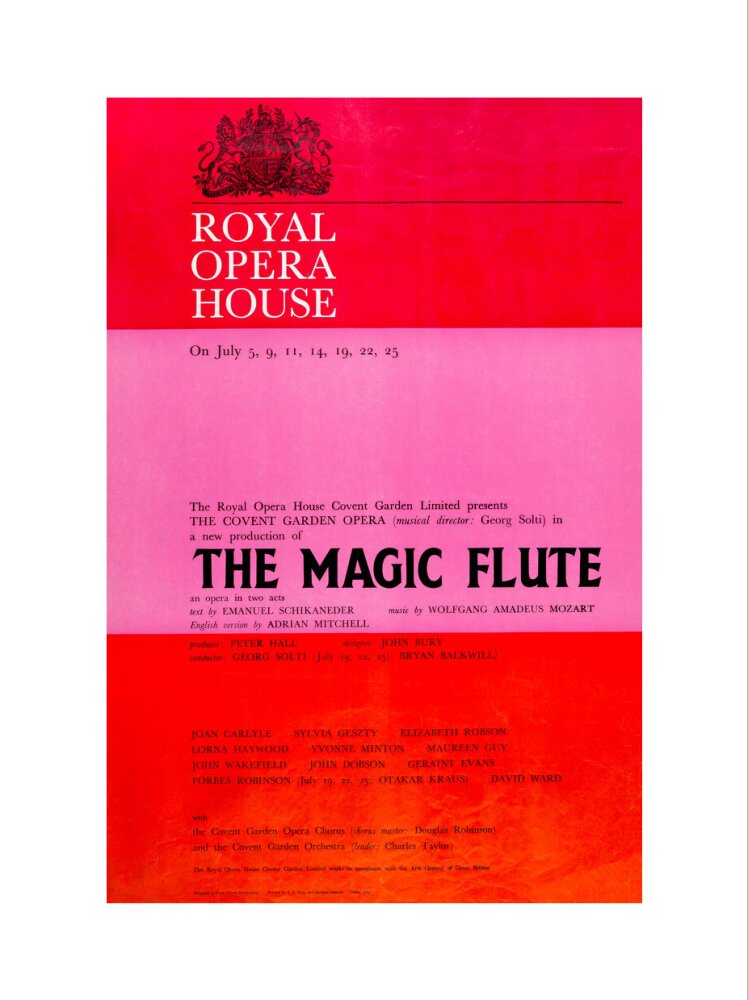 The Royal Opera poster for Mozart's The Magic Flute designed by John Bury, 1969