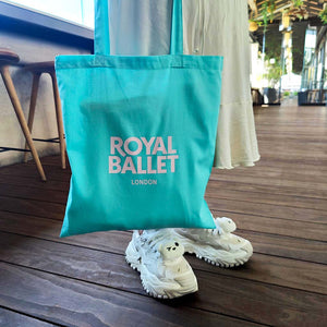 Take a piece of the Royal Ballet with you wherever you go with our mint green tote bag! Made from 100% cotton this classic tote is perfect for your daily essentials. Featuring the text Royal Ballet London in light pink on the front, it offers a subtle yet striking detail, making it an ideal accessory for ballet fans.