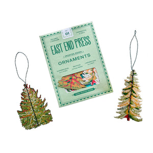 This set of Forest Paper Ornaments features four fold-out fir tree designs in soft yellows, reds, and deep greens. Each illustration is carefully screen printed by hand on both sides by skilled artisans in Jaipur. Every tree comes with a 10cm sewn loop, perfect for hanging on your Christmas tree, or simply stand them up to brighten your mantelpiece.
