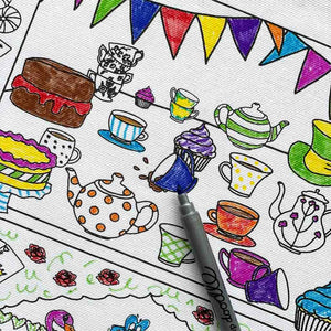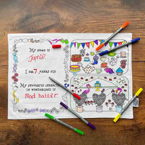 Bring some fun to meal times with the RBO Colour in Placemat. This 100% cotton placemat features gorgeous illustrations inspired by Alice's Adventures in Wonderland on both sides allowing for double the fun. Each placemat comes with a cloth carry bag for colouring in on the go, and a set of 10 wash-out fabric pens allowing you to wash your colouring out and start all over again!