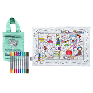 Journey with Alice through Wonderland encountering iconic characters such as the Mad Hatter, The Queen of Hearts, and even Alice herself. Don't forget to keep an eye out for some familiar Royal Ballet and Opera locations, including the Bridge of Aspirations and the Main Stage. Turn the placemat over and you'll find space to write your name, age, and favourite character from Wonderland, along with scenes from the Mad Hatter's Tea Party, and the Queen of Hearts' Garden allowing for detailed colouring.