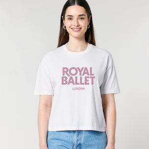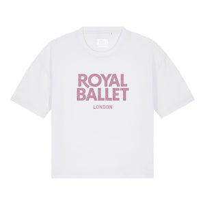 Made from 100% organic cotton, the Royal Ballet London White Glitter T-Shirt features pink glitter text for a striking contrast, sure to stand out. The contemporary silhouette and relaxed fit makes it suitable for everyday activities, or for relaxing at home.