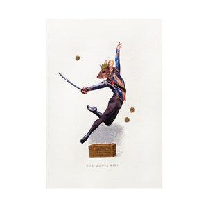 The Mouse King Greeting Card celebrates the joy of The Nutcracker ballet. A delightful illustration captures this beloved character jumping across the stage.